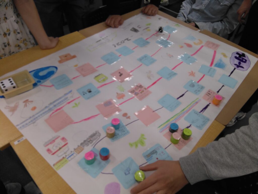 マスの内容も学生自身で考えたため、「止まれ」や「戻る」など、個性あふれるユニークなマスがたくさん完成しました。