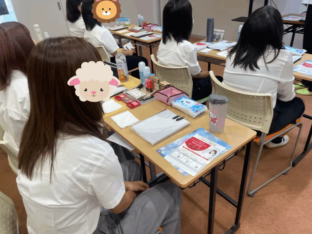 川崎キャンパスでは資生堂の方に来ていただいてメイク・身だしなみ講座を行ないました。身も心もスッキリするスキンケアを教えて頂き就活に挑みます(^_-)-☆