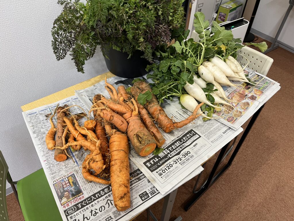 実はカレッジ畑で採れた野菜は大根だけでなく「万福寺人参」という