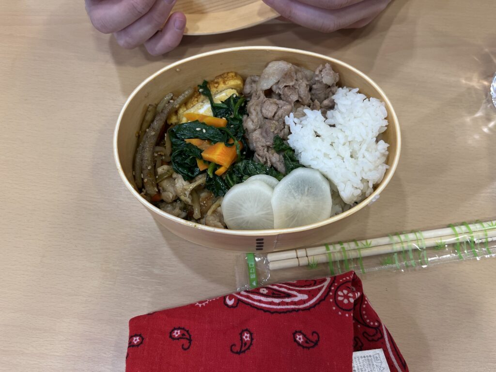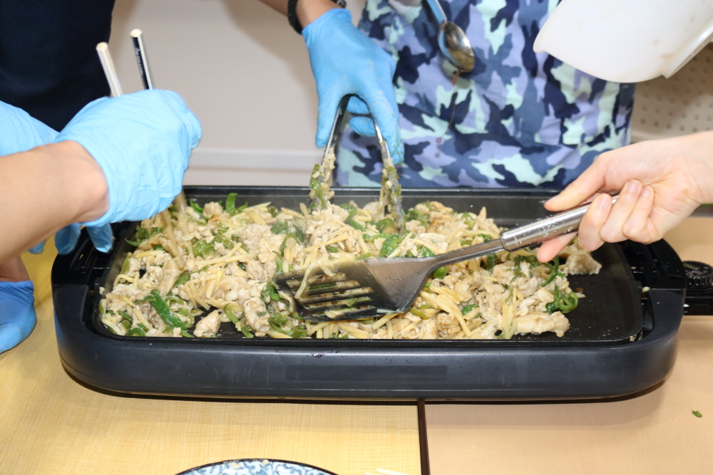 自立のAクラスは生姜焼きとほうれん草のナムル。Bクラスはチンジャオロースときんぴらごぼう。
