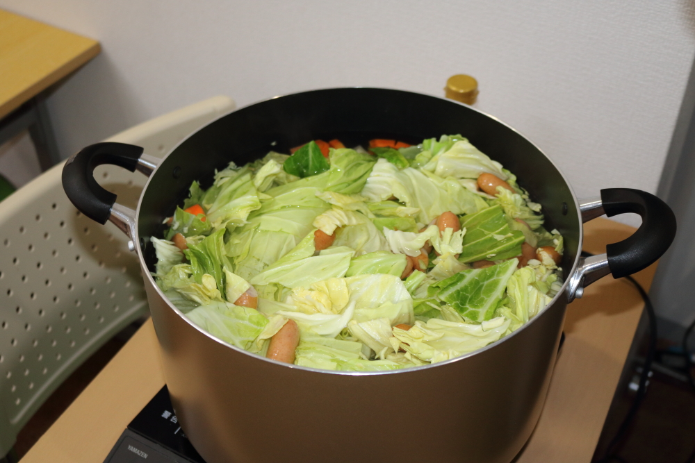 就労Cクラスは和風ポトフと卵焼き、そしてカレッジ畑で採れた大根の浅漬けを急遽追加して作ることに!