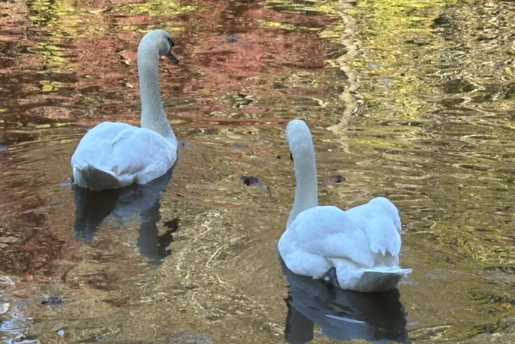 敷地内には白鳥もいて、後ろ向きですがお出迎えしてくれてたのでしょうか(笑)