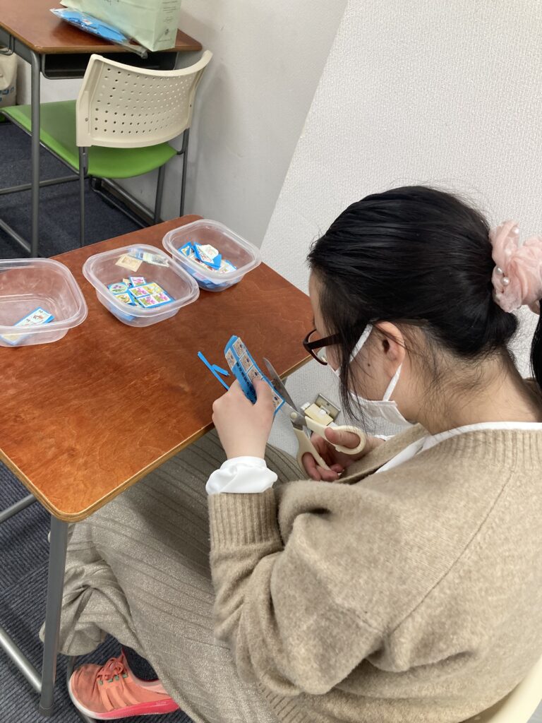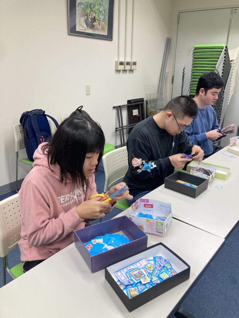 さらに、新宿区社会福祉協議会内で作業をされている地域の方々と一緒に、切手整理ボランティア活動への参加もしています。