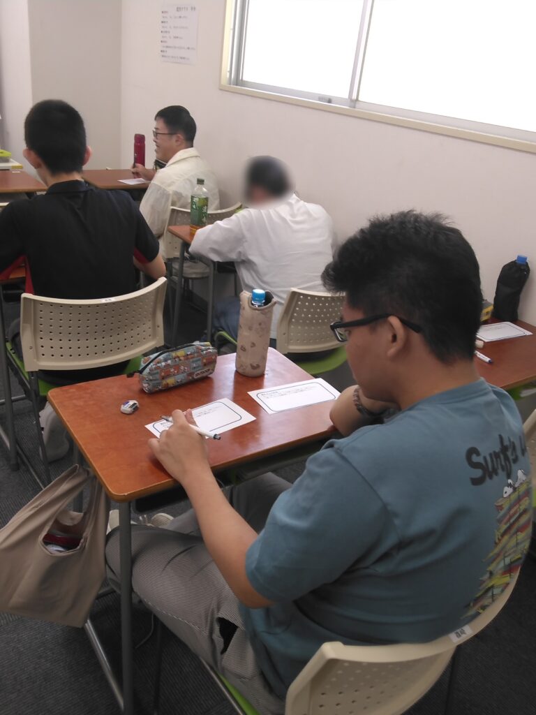 ほかの学生さんには、前に出ているその人の良いところを沢山書き出していたただきました!
