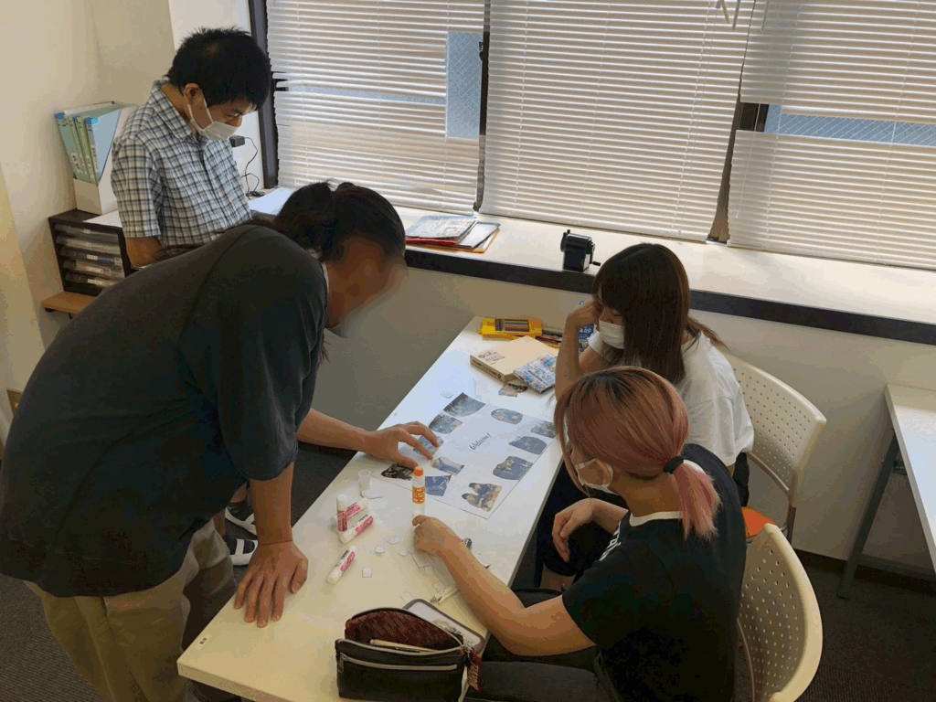 ハサミを使用して細かい部分を裁断したり、レイアウトやコメントを入れたり試行錯誤しています。