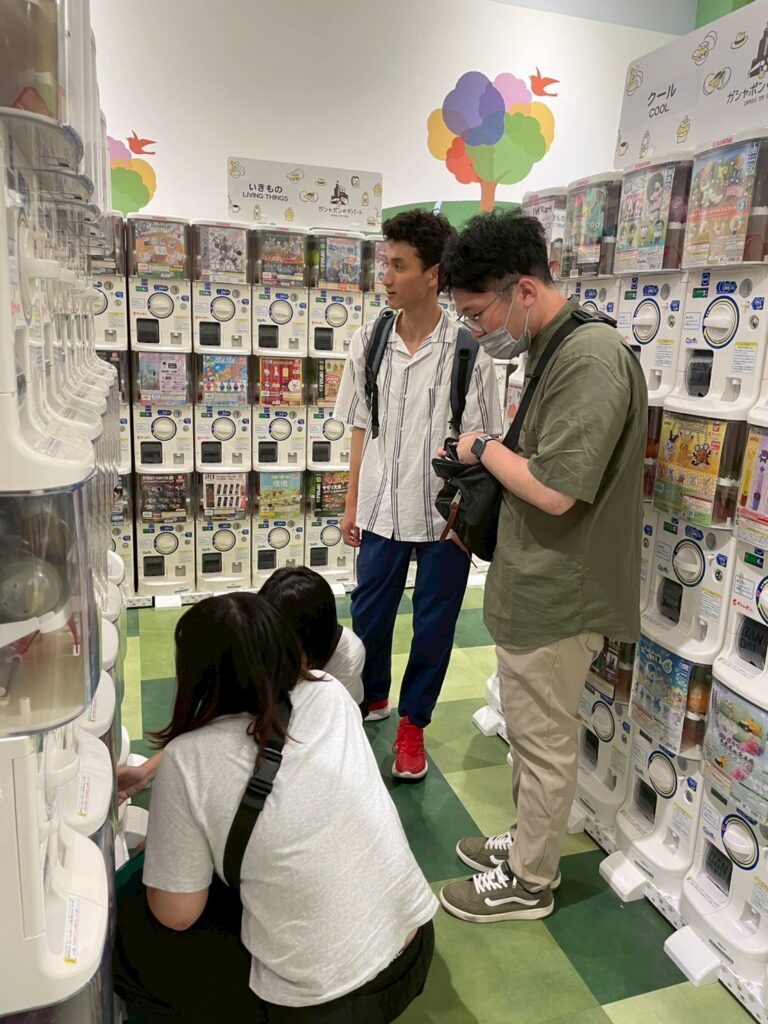みんなでガチャガチャをみたり、昼食を食べたりと