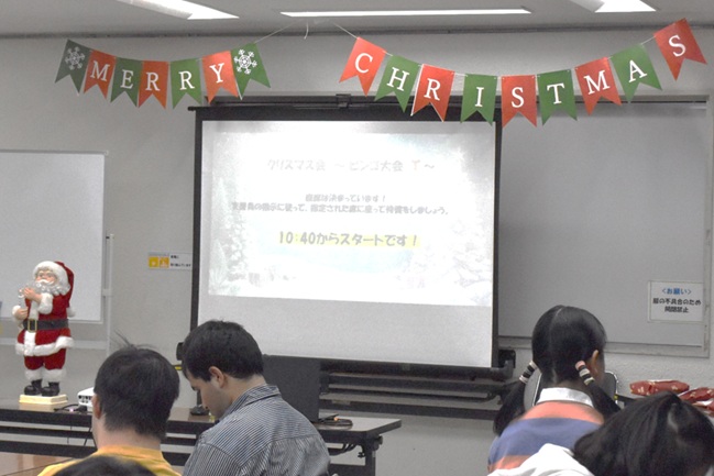ということで少し早いですが12/15(月)にクリスマス会を行いました。会場はキャンパスの近くの区民館で飾りつけは自分たちで準備しておきました。(準備の様子はこちら)