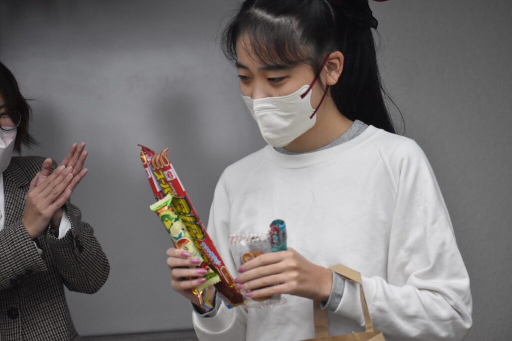 ビンゴになった人からプレゼントの番号を選びます。どの番号が誰からのプレゼントかわからないようにしているので、開けるまでドキドキです。