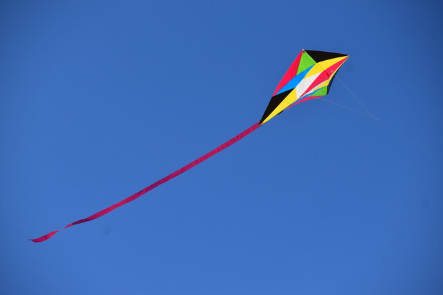 人気の凧あげも始まりました。空高く上がっています。