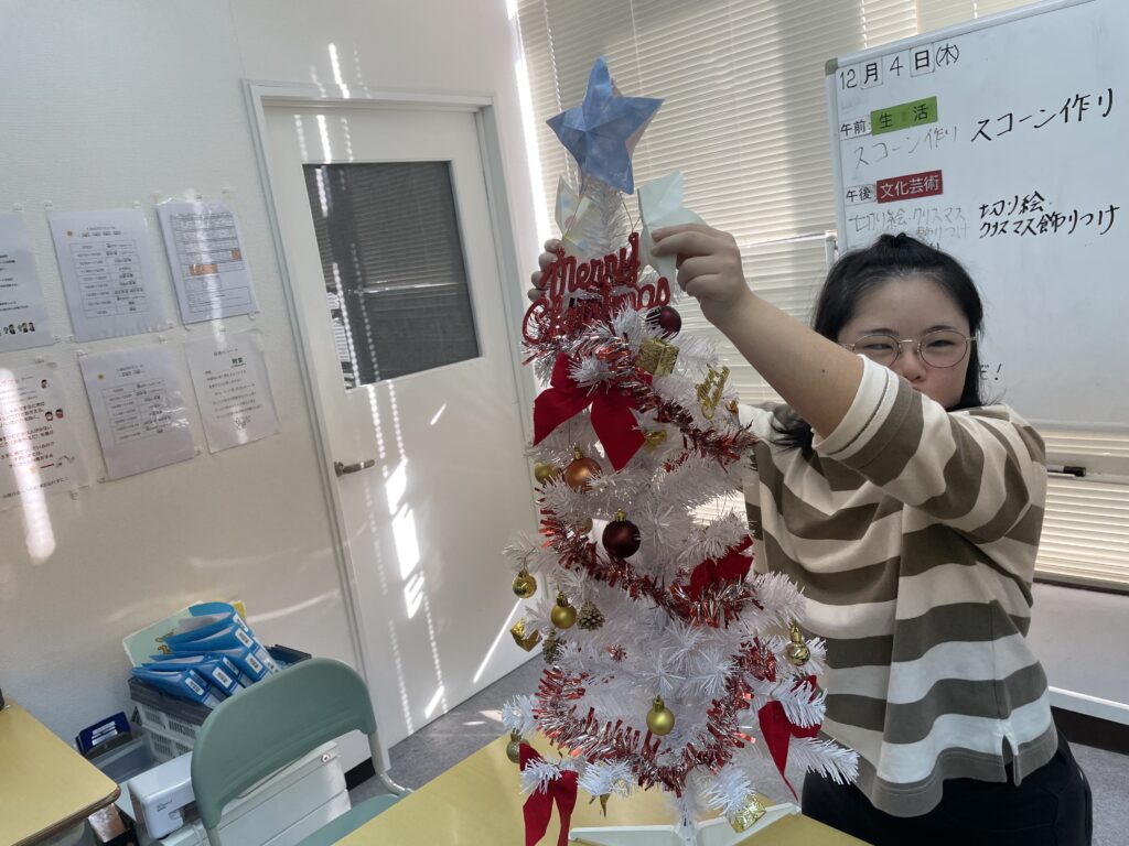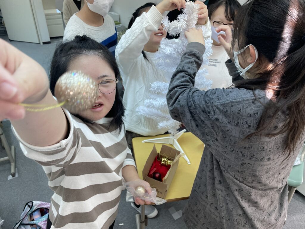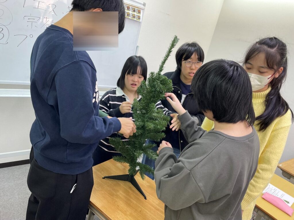 今回の活動では、クリスマスが近いということで、クリスマスツリーの組み立て、飾り付けを行いました。