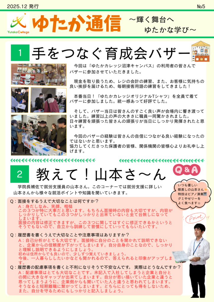 今回のバザーでは、接客・会計・挨拶など、就労に直結する場面が多く、まさに実践の場となりました。