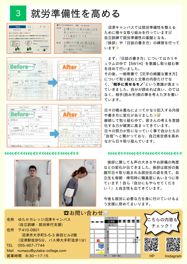 カリキュラムでは、【5W1H】を意識した日誌作成に取り組んでいます。