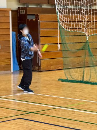 まずは、ウォーミングアップにラジオ体操をした後、「フリスビー」「バドミントン」「キャッチボール」に分かれ体を動かしました。