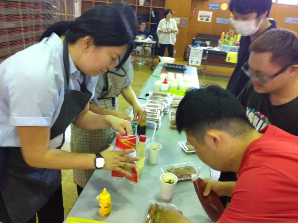 当日は立川キャンパスに近い学習館をお借りして、お互いにお客と店番。職員が準備をした焼きそばも満喫しました。