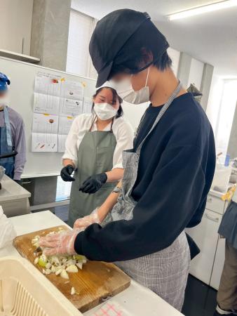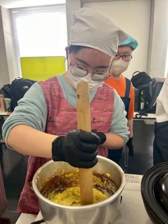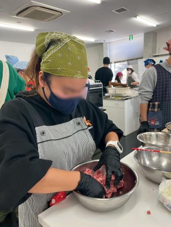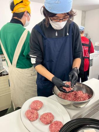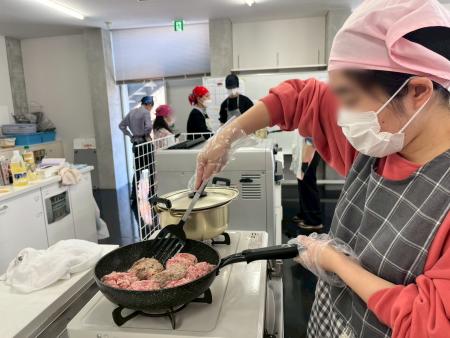 事前学習ではハンバーグの形成や計量スプーンの使い方などたくさん練習しました。