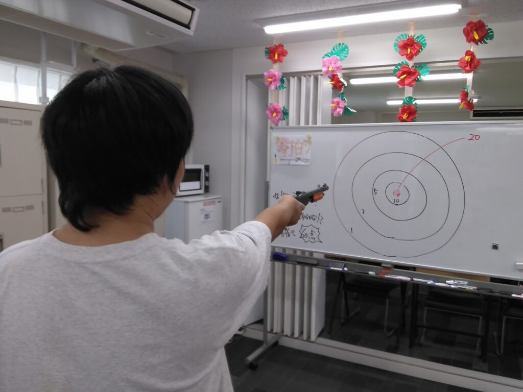 次は『輪投げ』の練習だ❗どのくらいの距離だと、みんな入るかなー🤔