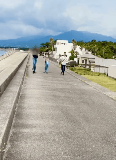 バスに乗り千本浜へ行き、いつもとは違う広々とした場所で大きく体を動かしに行っています🏃