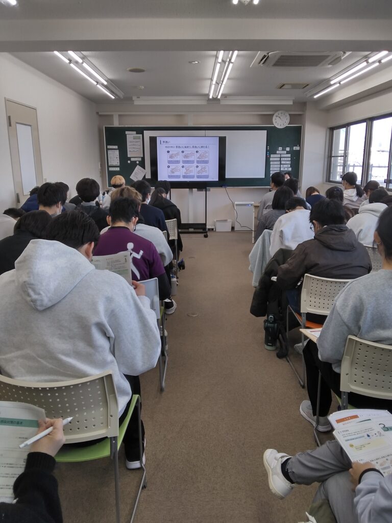 感染症予防訓練では埼玉キャンパス全員が集合して講師の方の話を聞きました!!